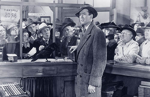 So George marries his small town girl, builds up his small town business, provides affordable housing for the towns folk and even puts his brother through college. As his family grows George is sucked in deeper and deeper. The big bank tries to buy him out but George stands firm. Just when Bailey’s loans office starts to make a profit disaster strikes and the big banker gets the money.