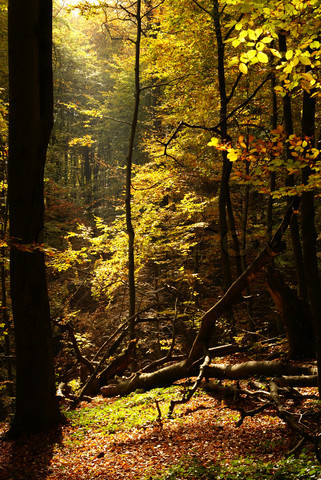 The forest still glows in a summer haze