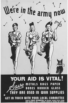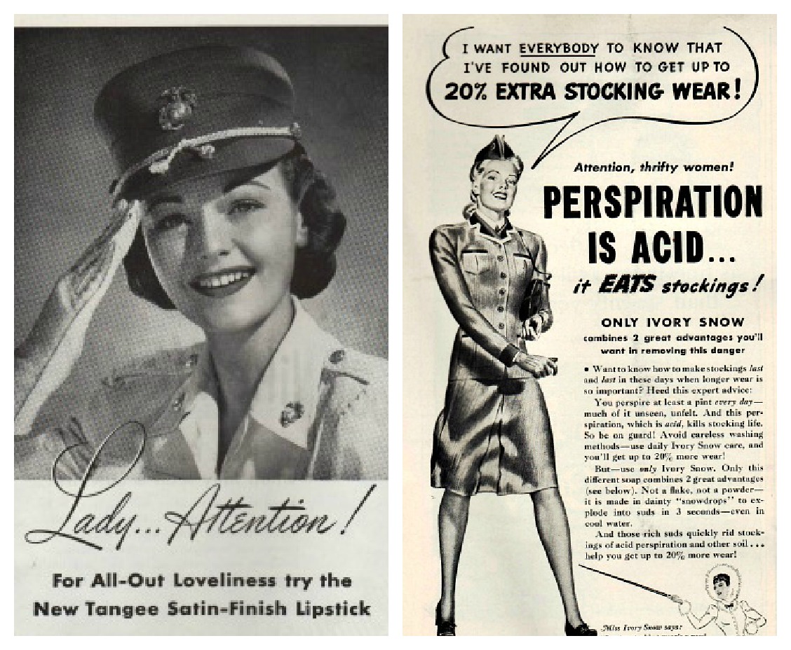 We were right in there during WW11 helping with the war effort on every front.   Yet we were equally important on the home front and on bill boards to keep up the  morale.  We were like the back up team and our main jobs were in to safeguarding supplies, reconnaisence and communications.  Yet even then we had to look good.  We did our hair up in permanent waves, wore red lipstick and kept our figures.